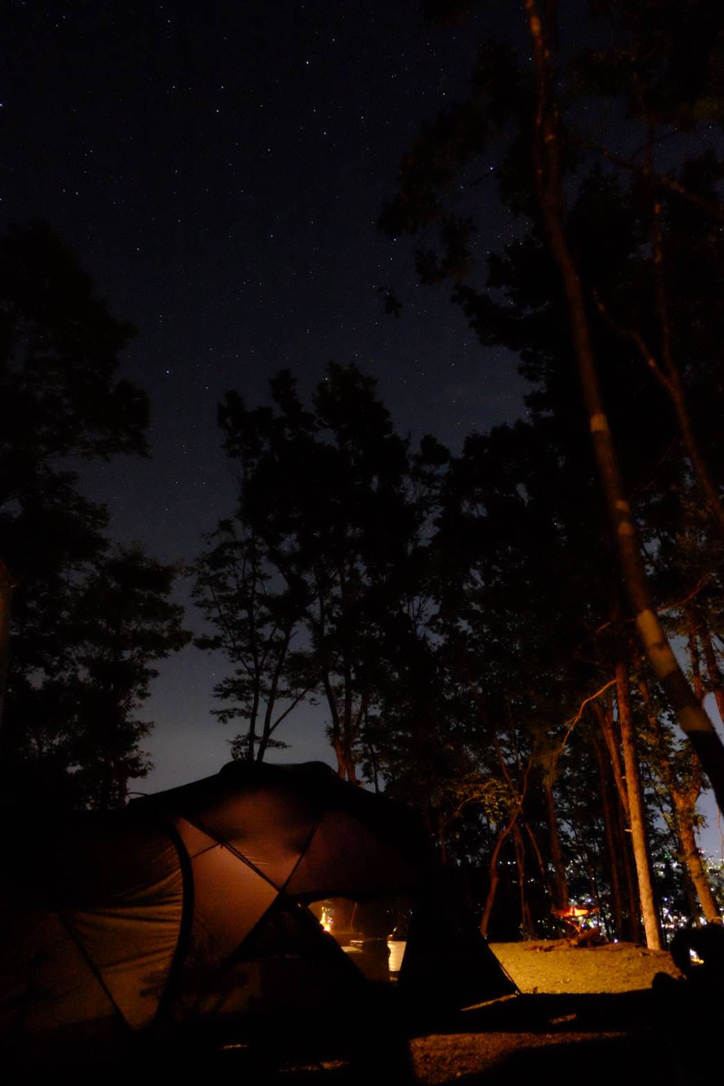 どのサイトも高低差と間隔があり、他のキャンパーさんがいる事を忘れてしまうくらいでした。電車の音が聞こえる静かな夜景と正面から登る朝日が最高です。サイトは大型テントとタープが張れる広さと駐車スペースがあります。
